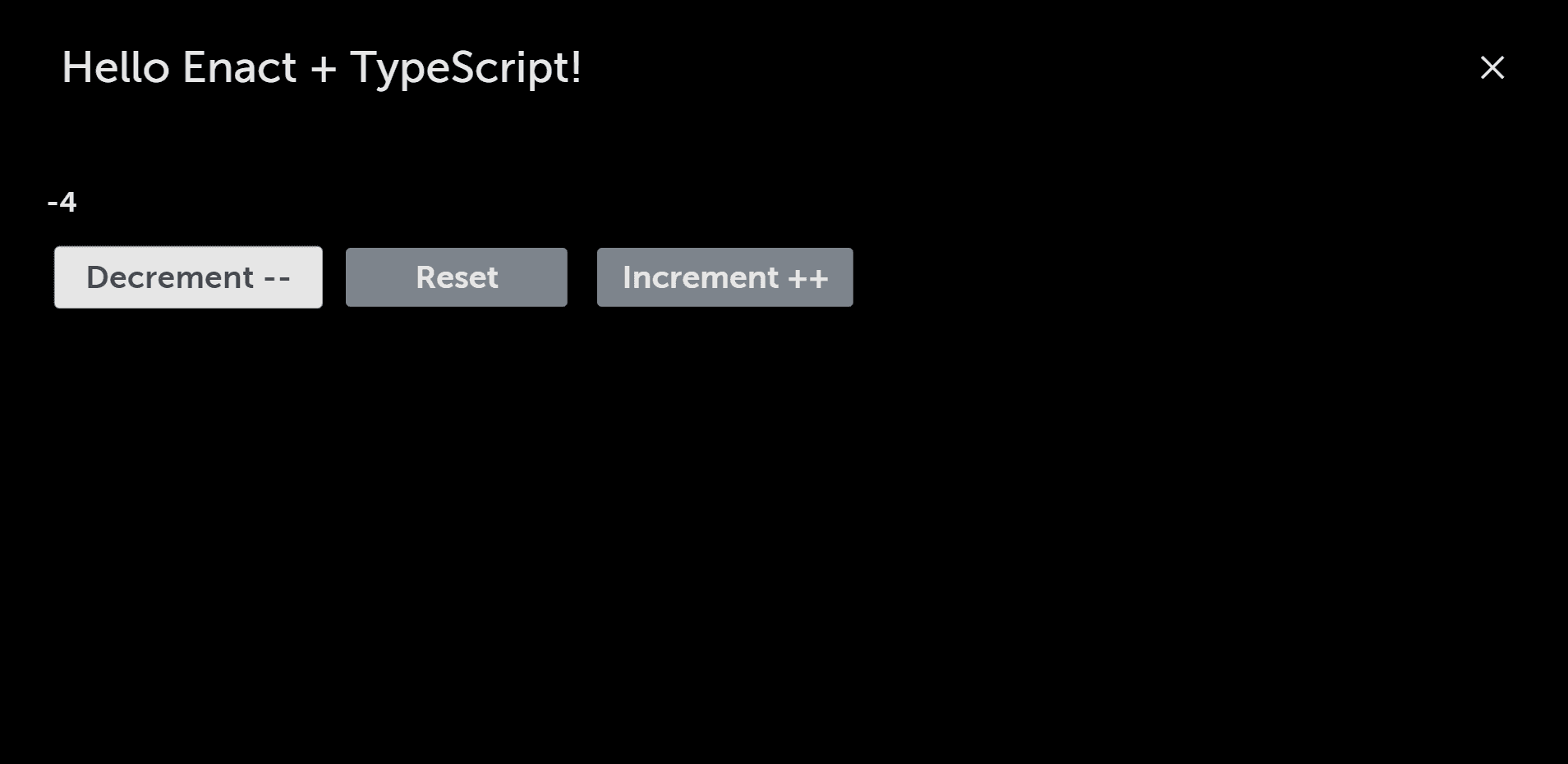 Using TypeScript with Enact we were able to create a reusable counter component. Integrating TypeScript with Enact helped us to extend our knowledge in using kind() and handle() in developing a reusable component.
